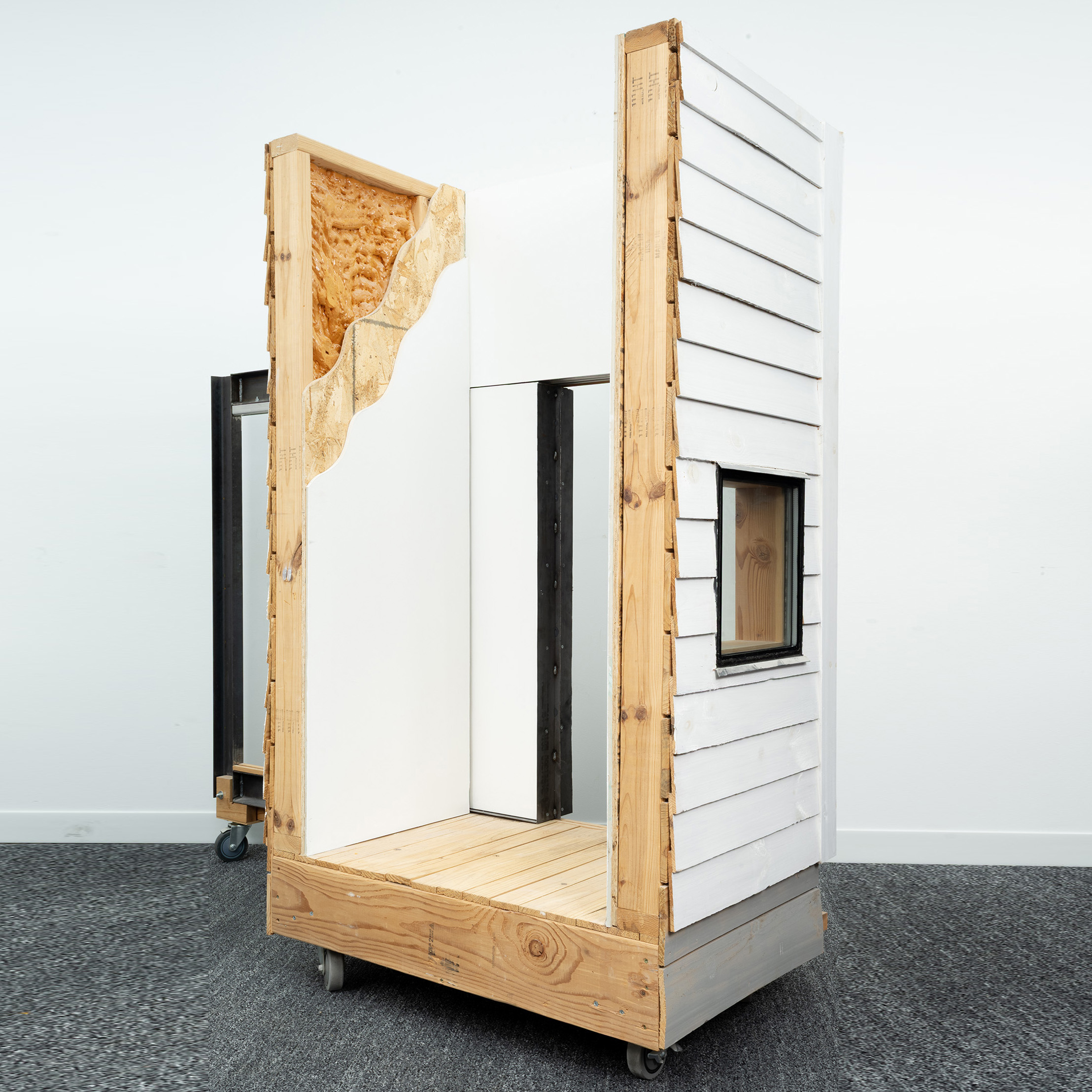 Mockups of the steel window frame by FACT and building assembly by Plain D*B